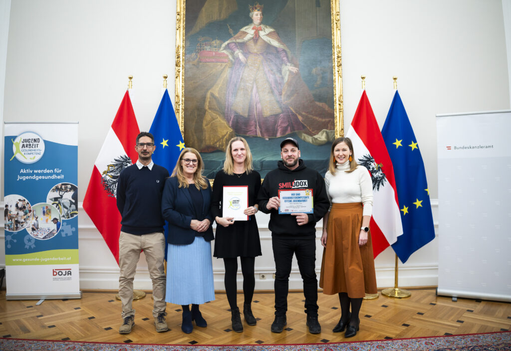 Im Rahmen einer neuerlichen Prüfung 2025 wurde dieser Prozess nun erfolgreich weiterentwickelt. Die OJAG wurde erneut als gesundheitskompetente Organisation ausgezeichnet und durfte in Wien die Rezertifizierung auf Gold-Level entgegennehmen. Diese Auszeichnung bestätigt den kontinuierlichen Einsatz für Gesundheitskompetenz in der Offenen Jugendarbeit und unterstreicht den Anspruch, gesundheitsfördernde Strukturen langfristig zu verankern.